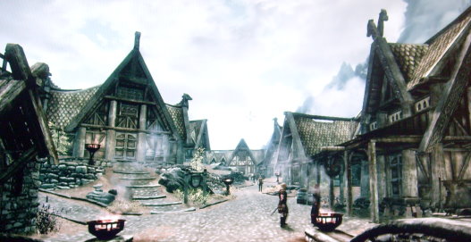 A bit later I passed a carriage, and it's owner told me a bit about Whiterun, and that I should beware of getting involved in a family feud between the Gray-Manes and the Battle-Born. He also shared that the barkeep of the 'Bannered Mare' would be a good source of further information. I suppose I was heading to the Bannered Mare then.